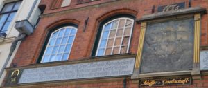 im Sommerurlaub beim Sightseeing in Lübeck. Dort gibt es ein Haus, das die Schiffergesellschaft sowie ein Restaurant beherbergt. Und hier prangt eine klare Anspielung auf die Seesturmstillung zentral an der Fassade.